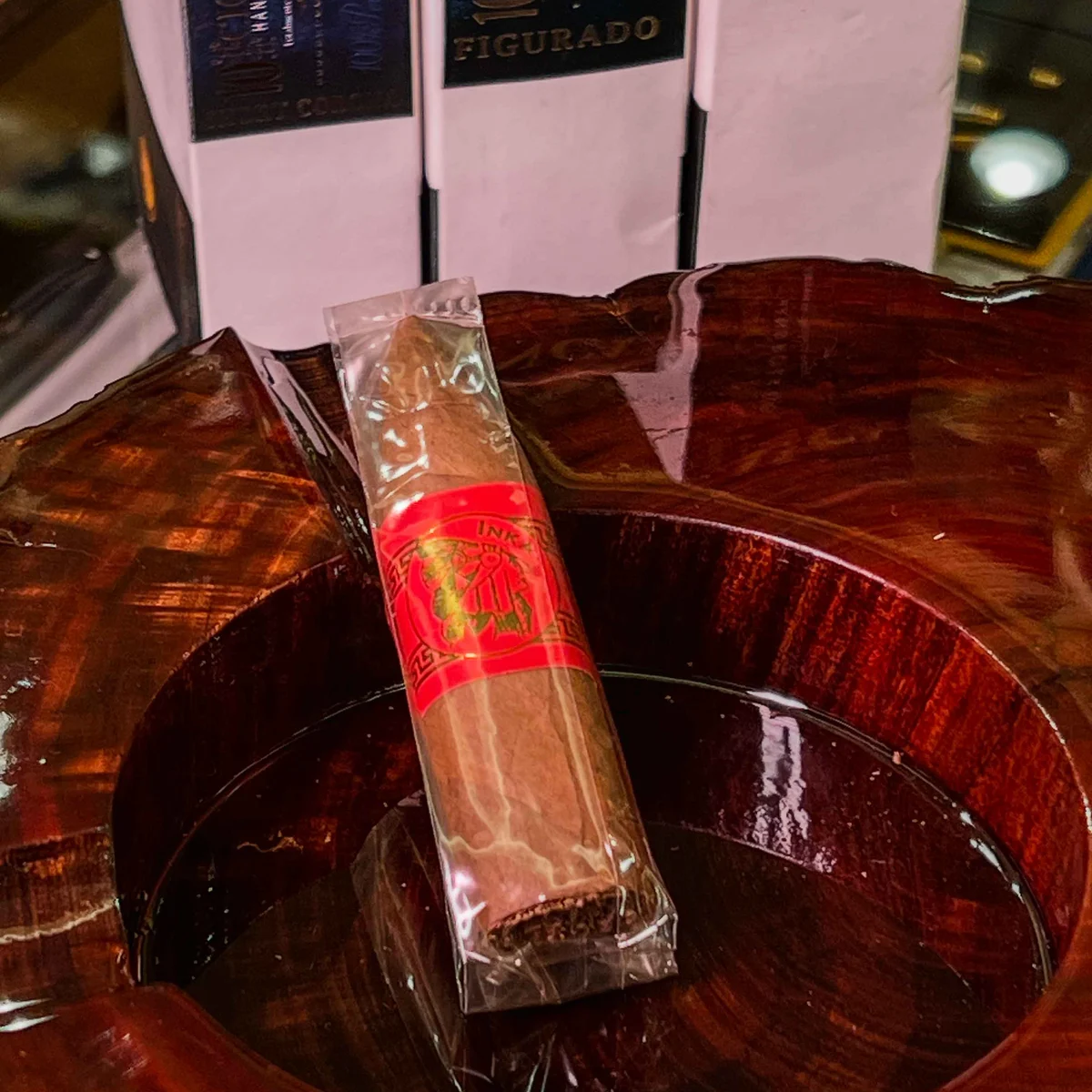 O Inca Figurado é um charuto de formato especial, proporcionando uma experiência de fumada dinâmica e evolutiva. Com 90 mm de comprimento e 22,8 mm de diâmetro, apresenta fortaleza média e revela um perfil aromático com notas de madeira, especiarias e um leve toque adocicado. Com cerca de 45 minutos de fumada, é ideal para quem busca complexidade e mudança de sabores ao longo da degustação.